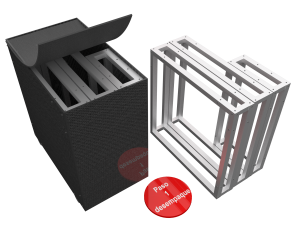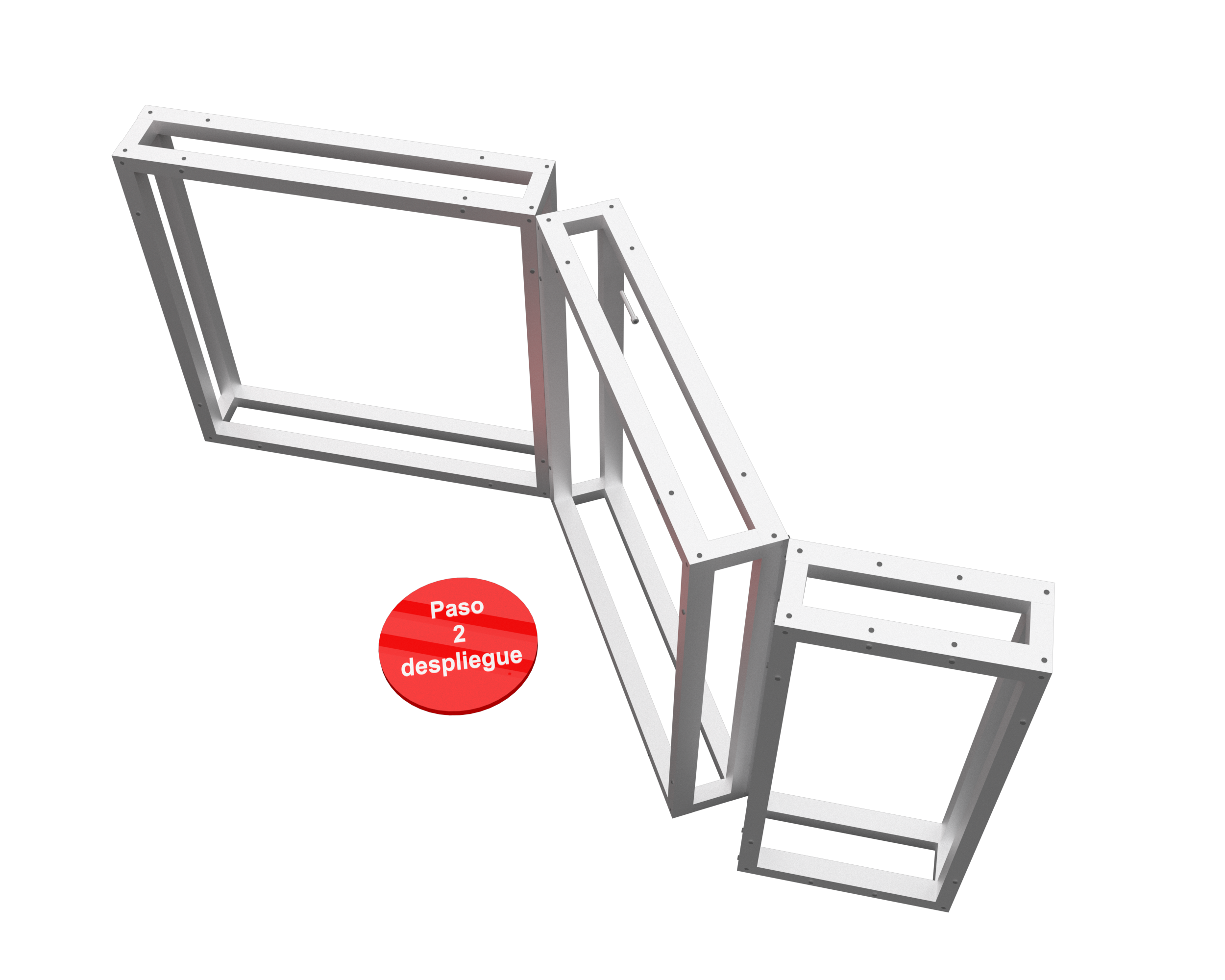 Nuestro innovador sistema (Patente concedida número: PCT/CO2014/000004) de módulos cuadrados, rectangulares y curvos elaborados en perfil metálico de aluminio industrial de 1 1/2 Pulgada x 1 1/2 Pulgada, de sección cuadrada, unidos entre sí en las caras posterior y anterior sirven para plegar uno con otro en forma de zigzag.